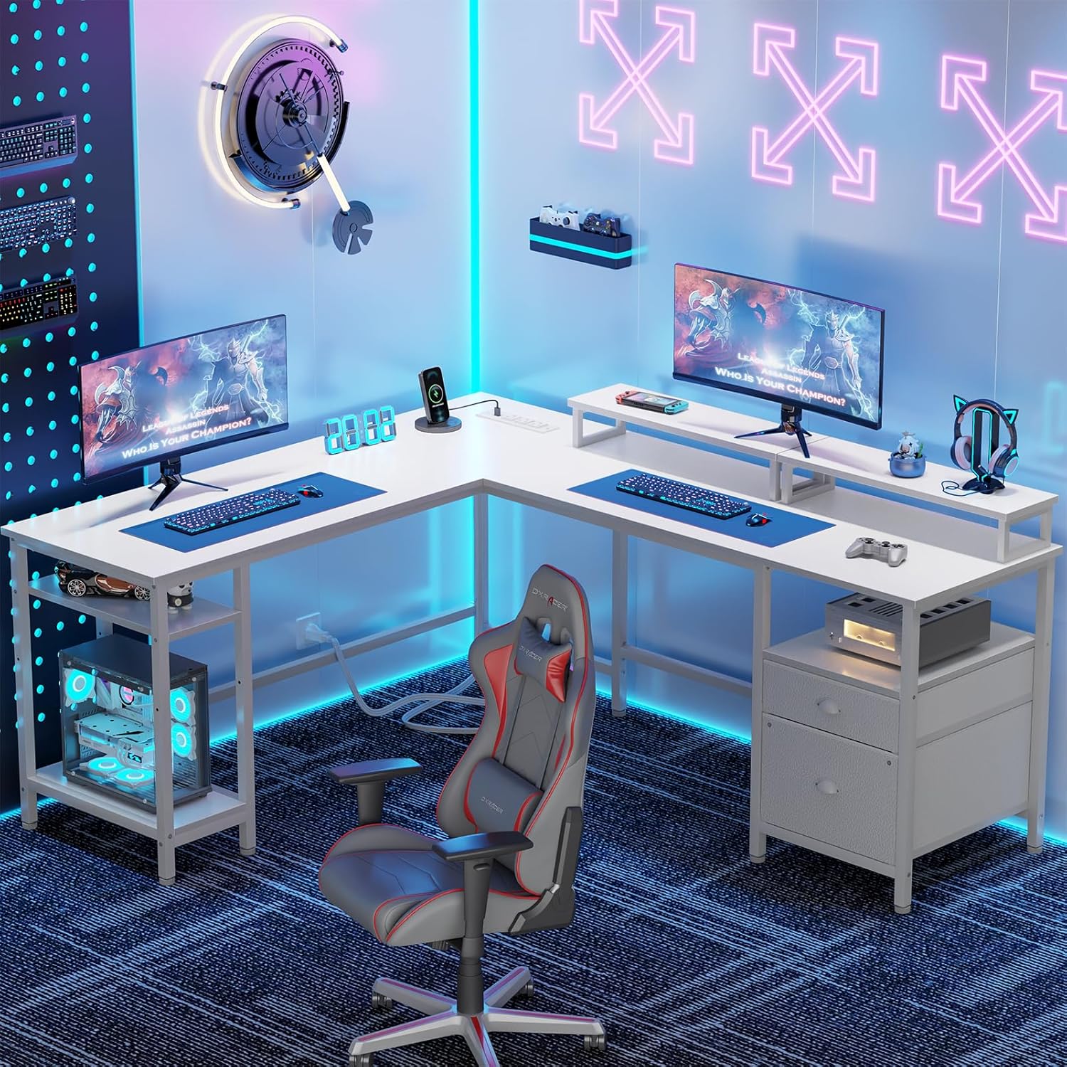Upgraded Fabric File Drawer: The l shaped desk with a fabric drawer and file cabinet, 2 tier storage shelves, allowing you hold letter/A4/ legal size files. Drawers made of high-quality non-woven fabric that is lightweight, breathable and prevent dust.